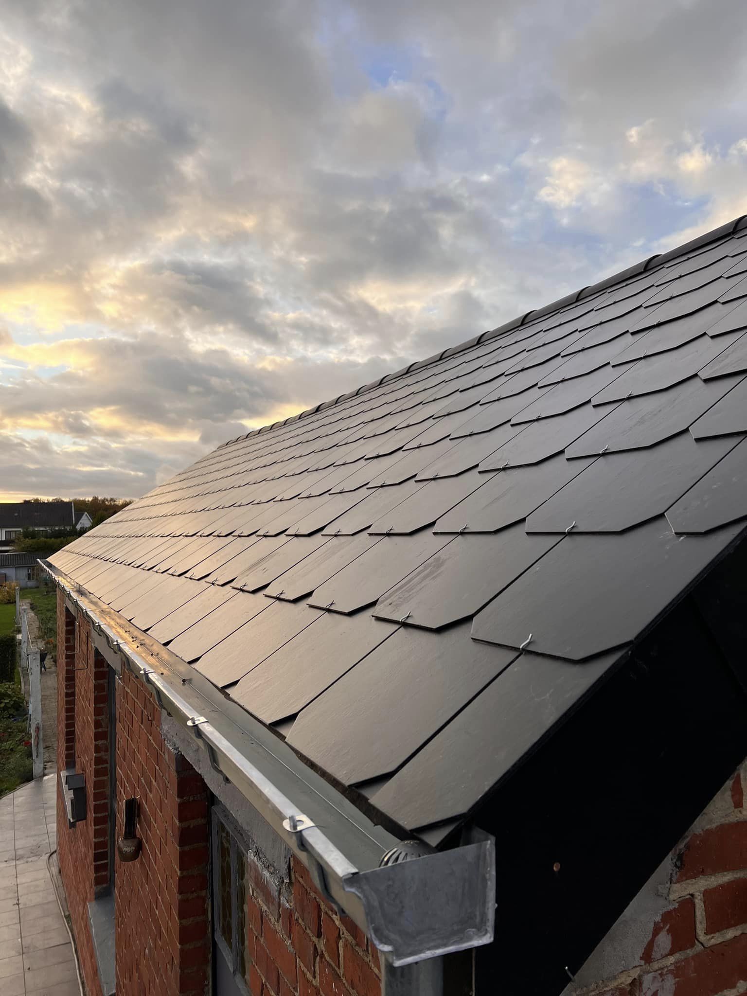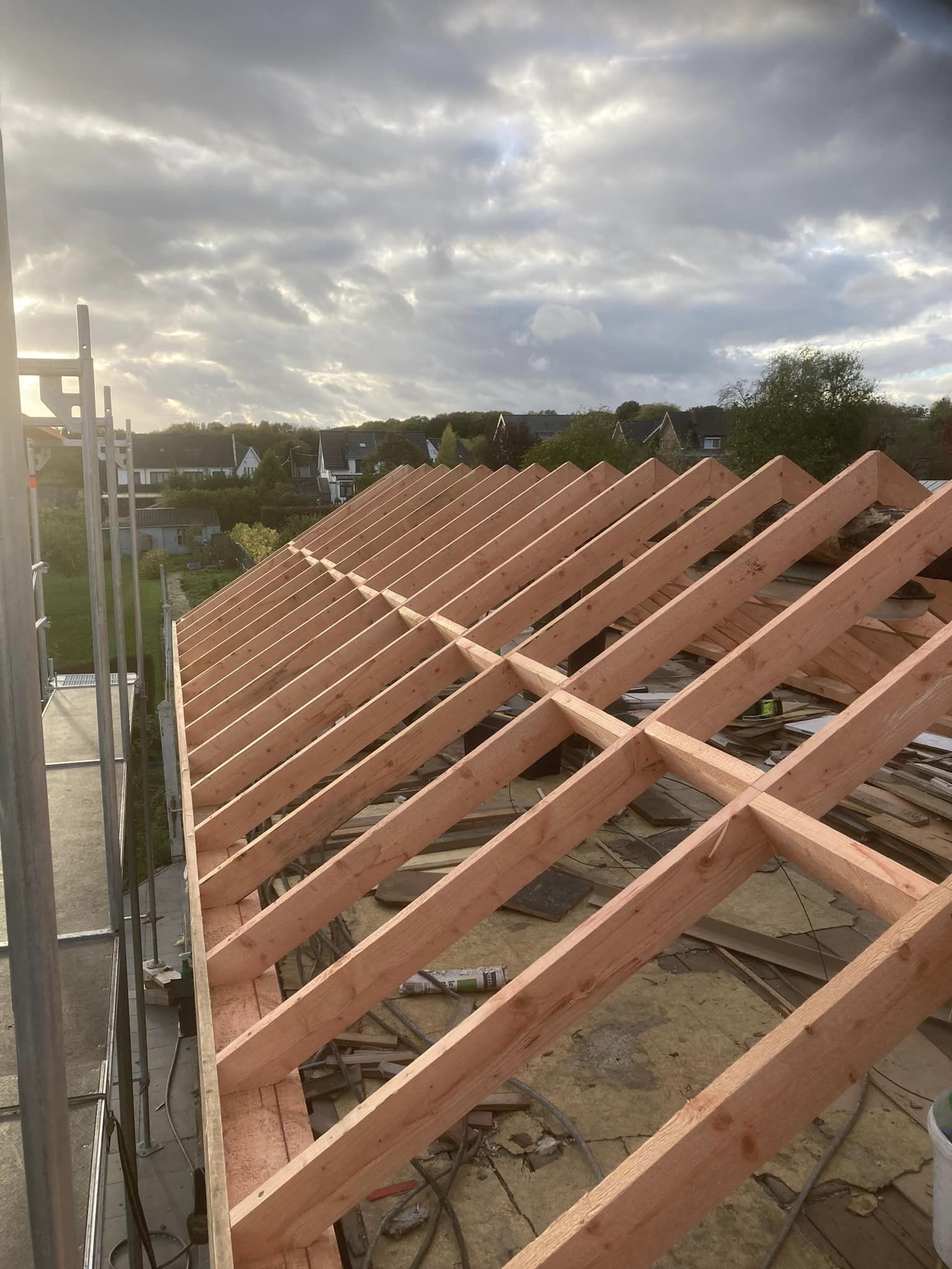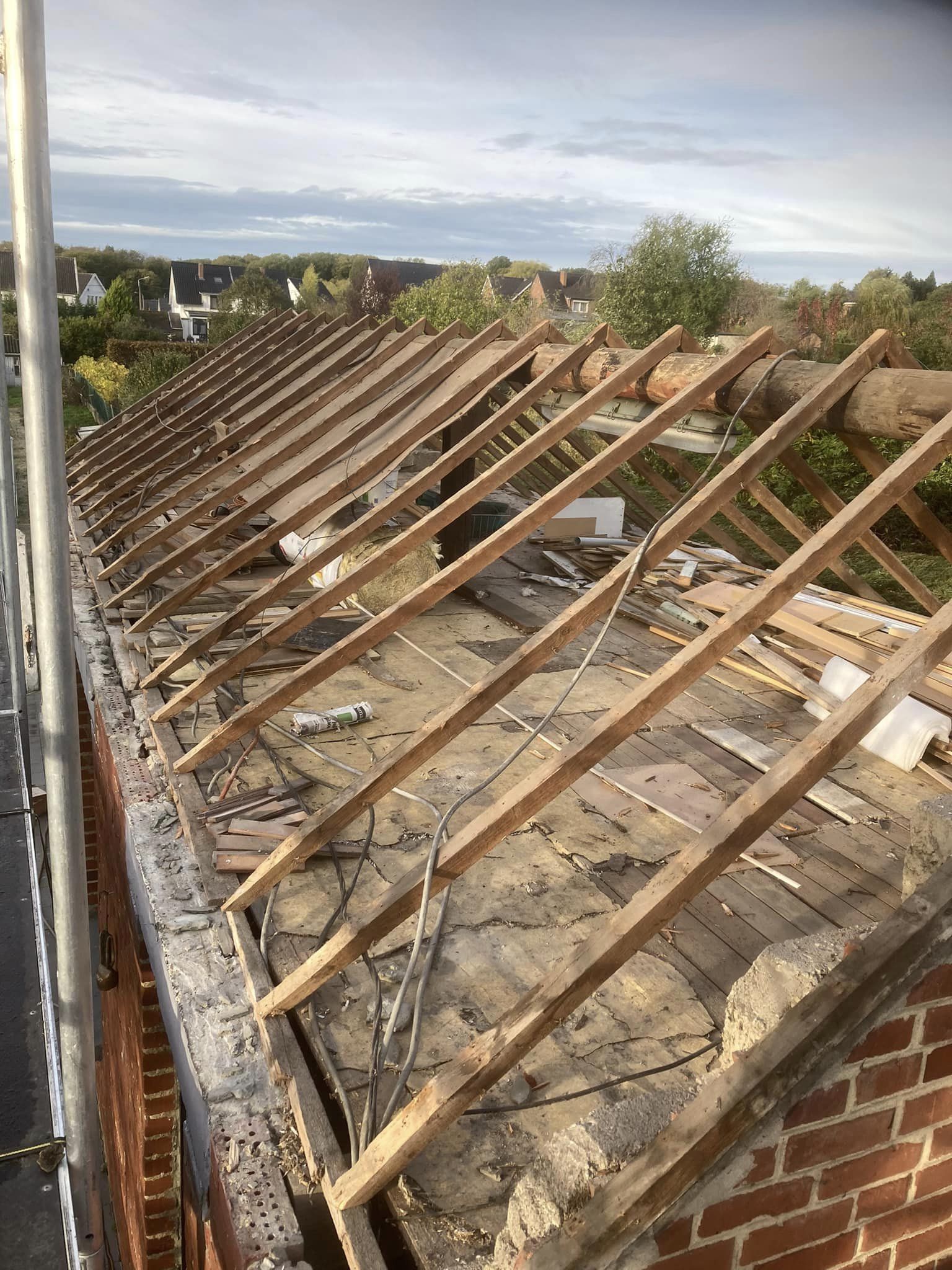 Réalisation d’une charpente et d’une couverture en ardoise.