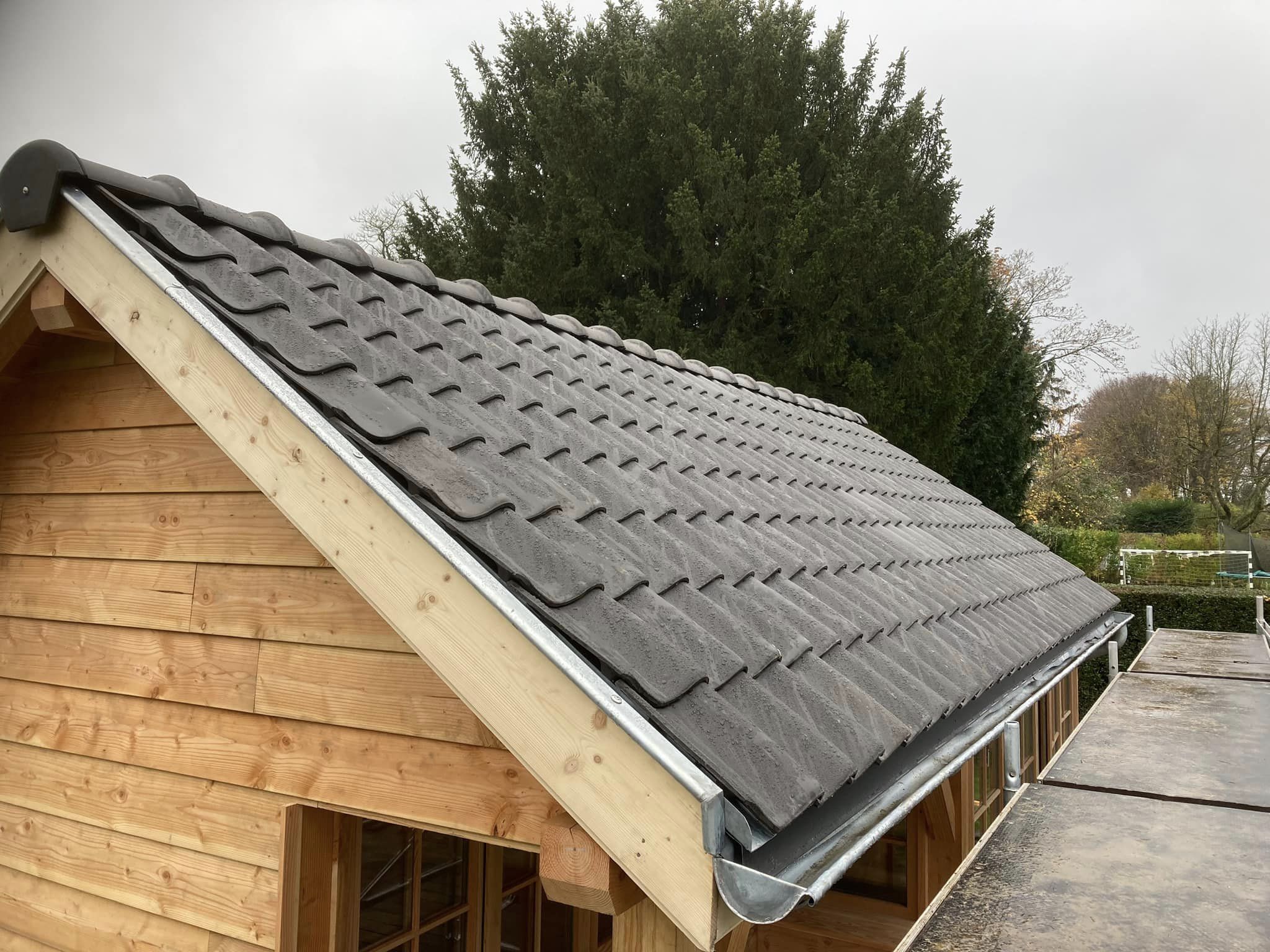 Réalisation d’une super toiture avec une tuile pour l’occasion très particulière. (Tuile koramic flamande) En collaboration avec l’entreprise Timberframing.